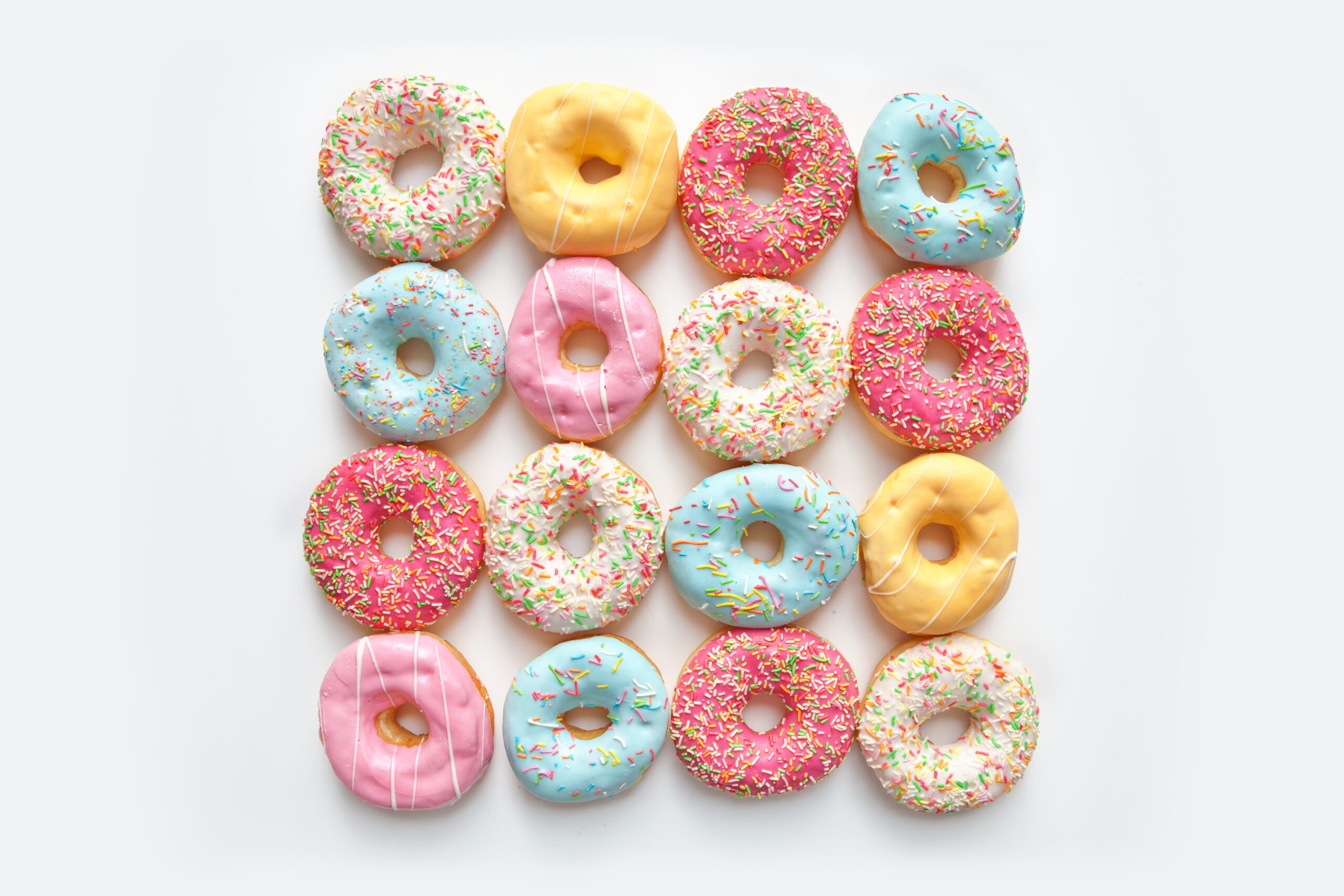 Colorful delicious donuts isolated on white background